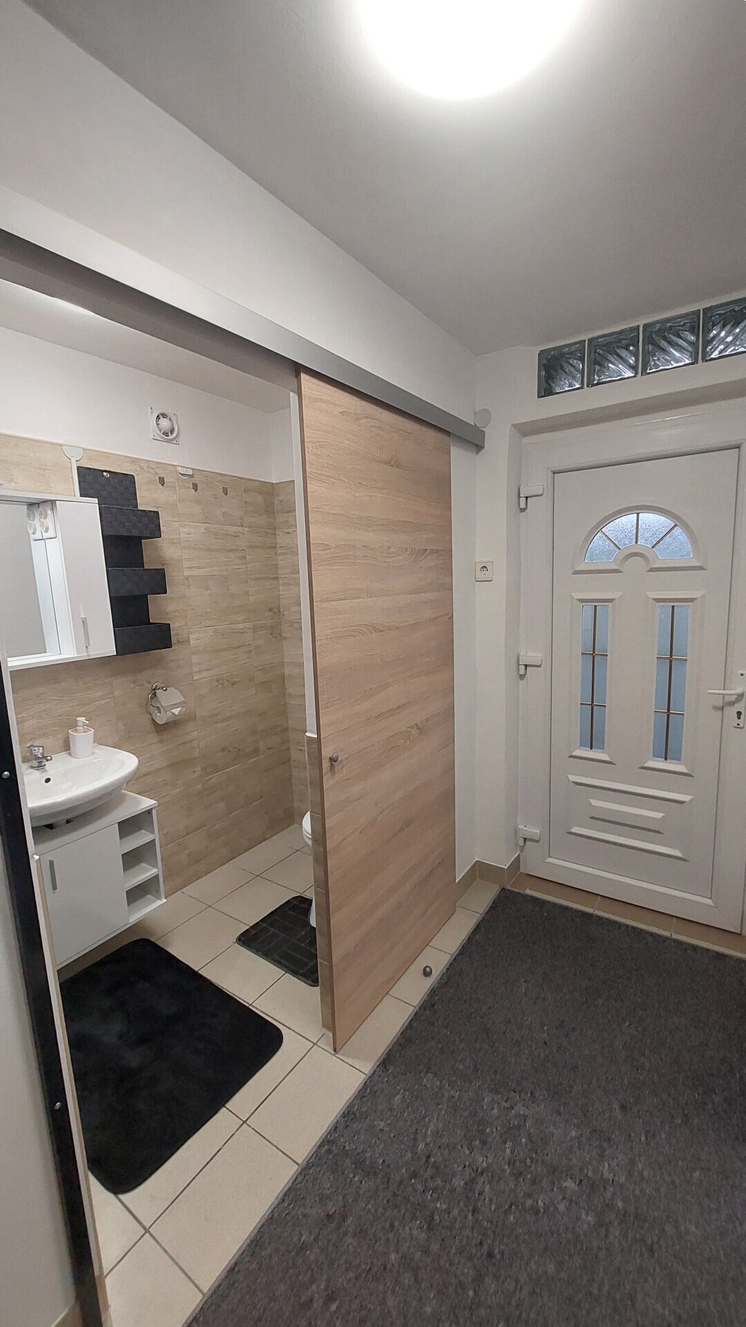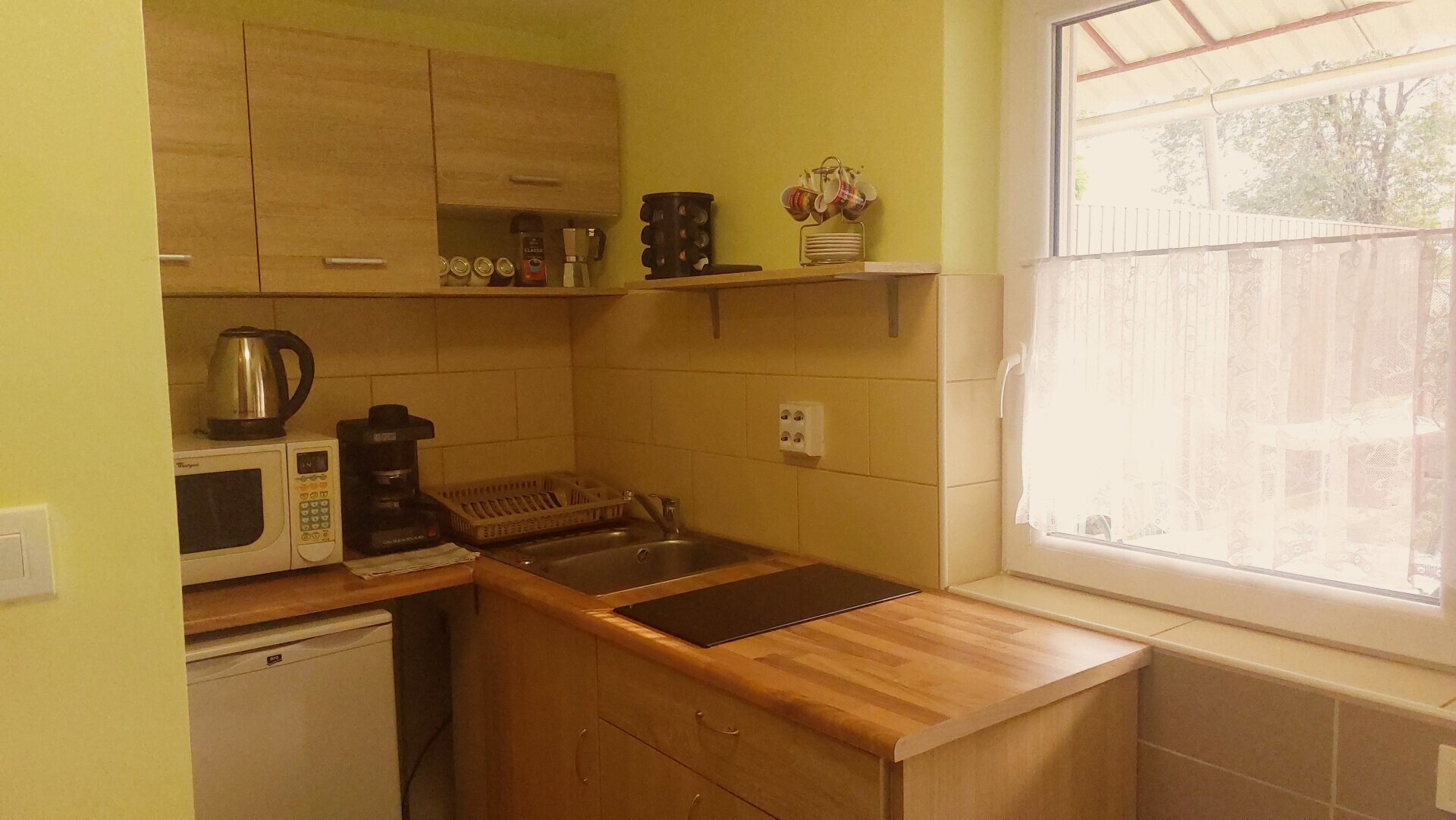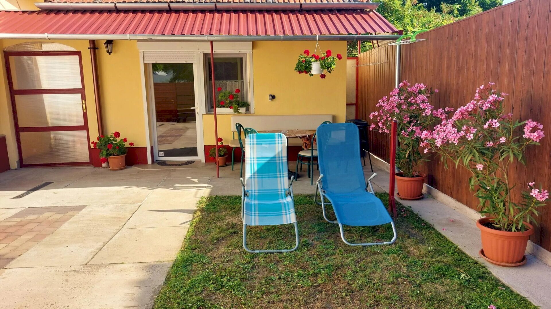 The classic 4+1 person house features 2 bedrooms, a bathroom, a fully equipped kitchen, a dining room, free WiFi, and cable TV. The yard offers opportunities for grilling and sports activities. The house has a separate entrance and parking space. The garden is equipped with outdoor furniture (table, chairs, benches, sunbeds, swing bed) providing a pleasant setting for dining and relaxation. Nearby, there is a grocery store (Coop abc), Rossmann, Pepco, bakery, ice cream shop, pizzeria, restaurant etc.