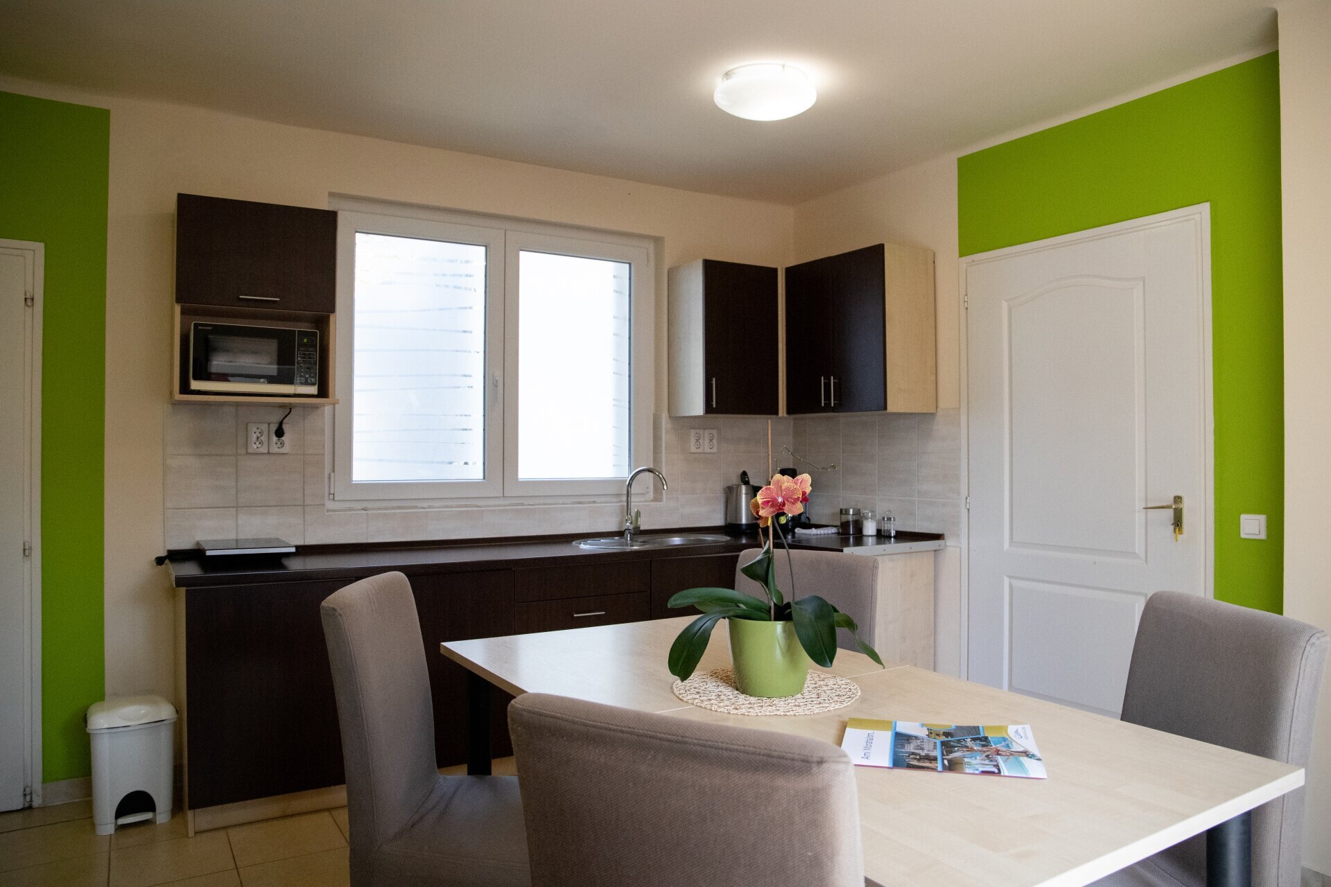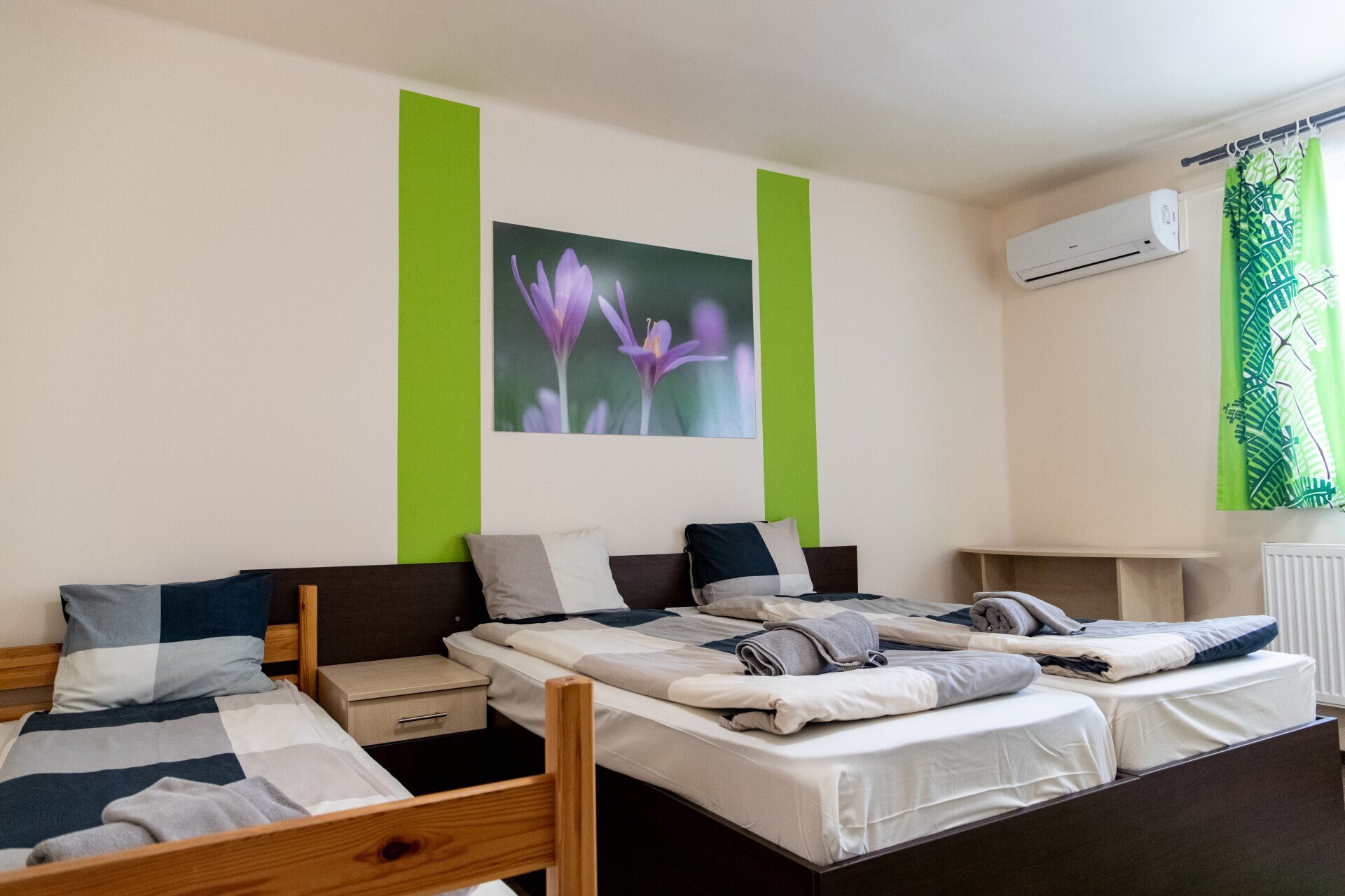 - private bathroom (shower) + toilet (with bathroom)Our 3 separate apartments are suitable for a total of 10 + 1 people. The apartments have free air conditioning, WIFI and a flat-screen TV. Accommodation is free for children up to 3 years old!