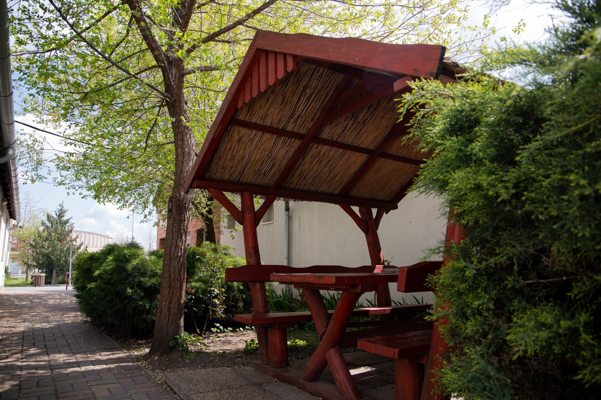 Our apartment also has a flower garden with a covered garden seat, which is ideal for splashing and talking in the summer.