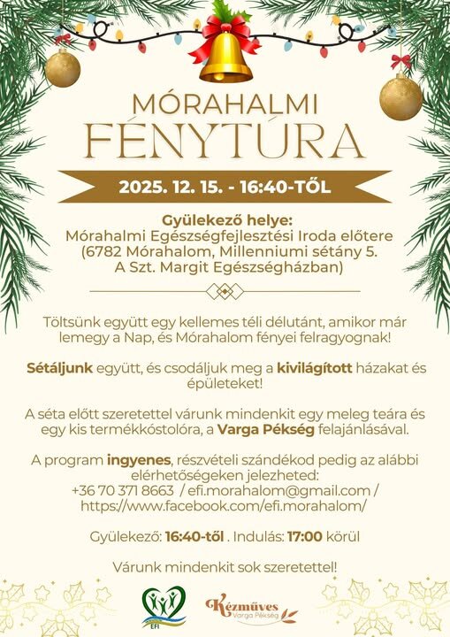 2025. december 11. és 21. közötti időszakban Mórahalmon és térségében megtalálható programok, események.