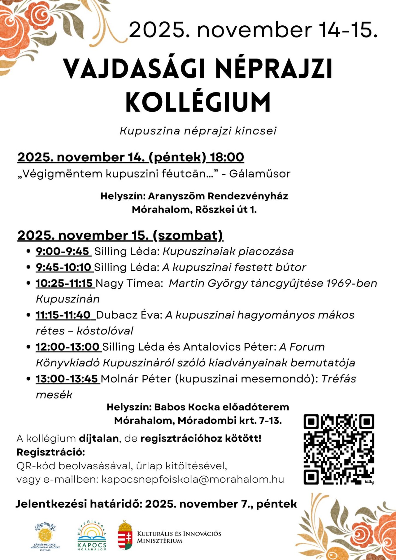 Regisztrálni QR-kód beolvasásával vagy e-mailben lehet: kapocsnepfoiskola@morahalom.hu