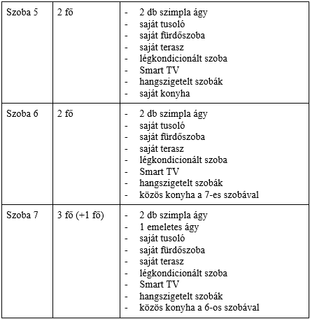 20 férőhelyes apartmanházunk a következő felosztásokban van: