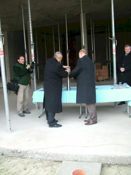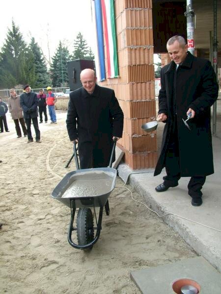 – Ilyen, amikor a politikus dolgozik – mondta nevetve Nógrádi Zoltán, miközben megemelte a malterral teli talicskát. Mórahalom polgármestere a városban épülő Hotel Colosseum névre keresztelt négycsillagos wellness- és konferenciaszálló alapkövét tette le Hévizi Jánossal, a kivitelező AKTÍV Kft. ügyvezetőjének segítségével.