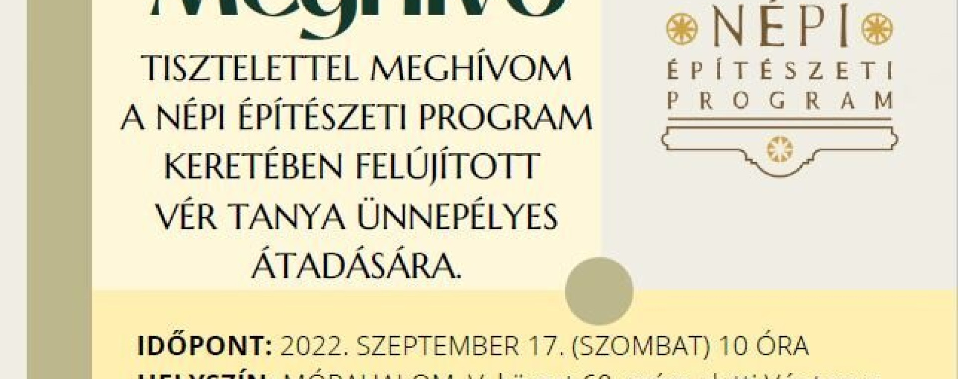 Mórahalom Városi Önkormányzat 2022-ben újította fel a Vér tanyát a Népi Építészeti Program keretében. Csatlakozva a Kulturális Örökség Napjai eseménysorozathoz 2022. szeptember 17-én 10 órától kerül sor a megújult tanya ünnepélyes átadására.