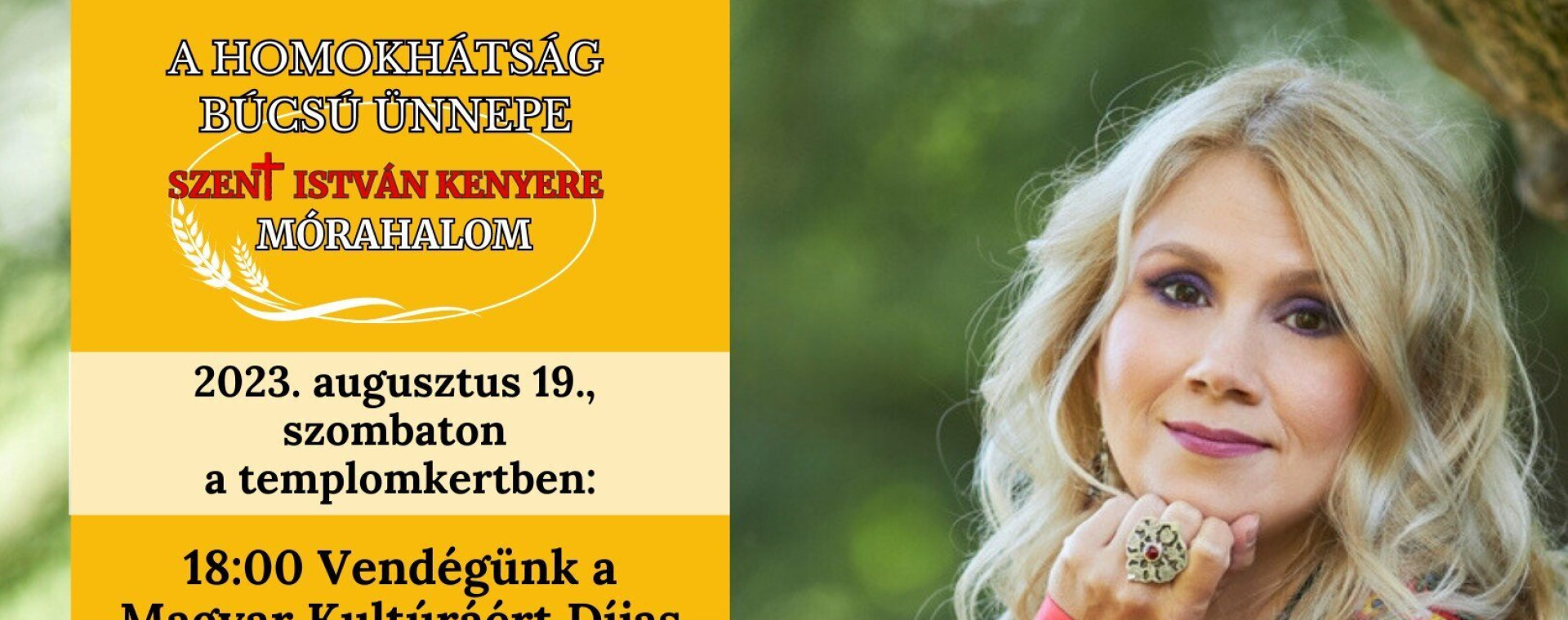 A népzene és világzene műfajának egyik legismertebb, szakmailag is elismert előadója, Kovács Nóri énekesnő lesz a Homokhátság Búcsú ünnepének egyik kiemelt vendége.