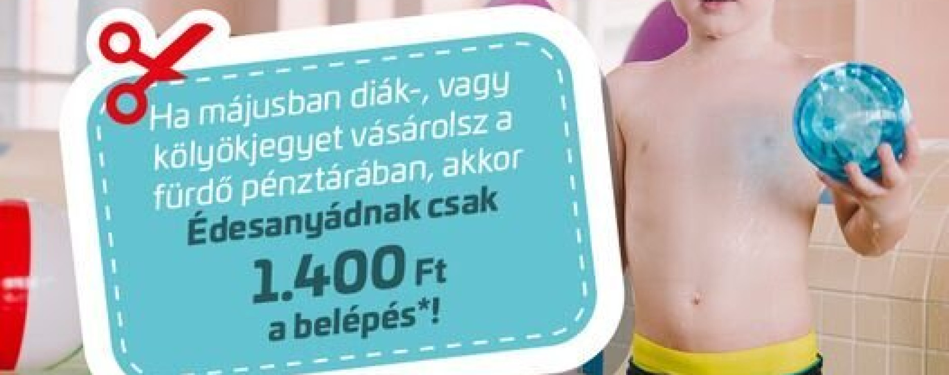 KEDVEZMÉNYES FÜRDŐZÉSSEL ÜNNEPELJÜK AZ ÉDESANYÁKAT! Ha májusban diák-, vagy kölyökjegyet vásárolsz a fürdő pénztárában, akkor édesanyádnak csak 1 400 Ft a belépés!