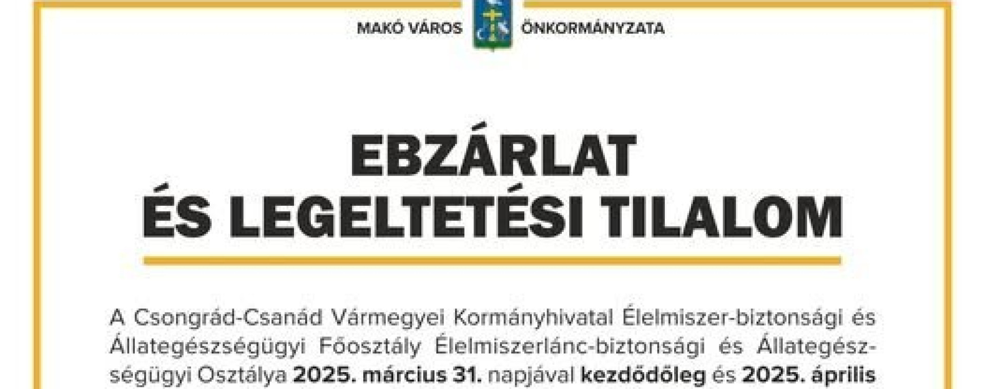 2025. március 3 és 2025. április 20. között ebzárlat és legeltetési tilalom.