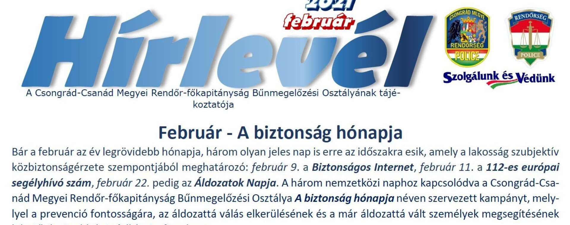 Bár a február az év legrövidebb hónapja, három olyan jeles nap is erre az időszakra esik, amely a lakosság szubjektív közbiztonságérzete szempontjából meghatározó: február 9. a Biztonságos Internet, február 11. a 112-es európai segélyhívó szám, február 22. pedig az Áldozatok Napja.