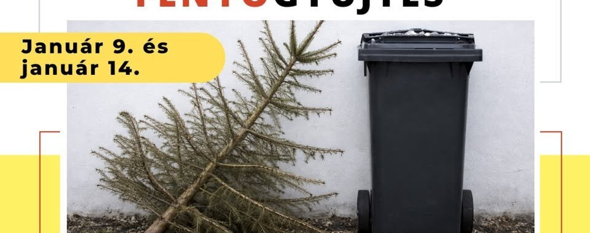 A januári zöldhulladékgyűjtés során kizárólag a teljesen lecsupaszított, díszektől, dekorációtól és egyéb hulladéktól mentes fenyőfákat áll módunkban elszállítani. Kérjük, a kihelyezés előtt ellenőrizzék, hogy minden idegen anyag eltávolításra került-e a fáról.