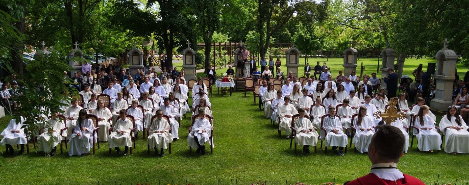 Hetvennégy fiatal vette fel az oltáriszentséget vasárnap a mórahalmi Szent László király templom kertjében tartott szabadtéri szentmisén. Az ünnepi fehér elsőáldozási ruhát előző nap kapták meg a beöltözési szentmisén.