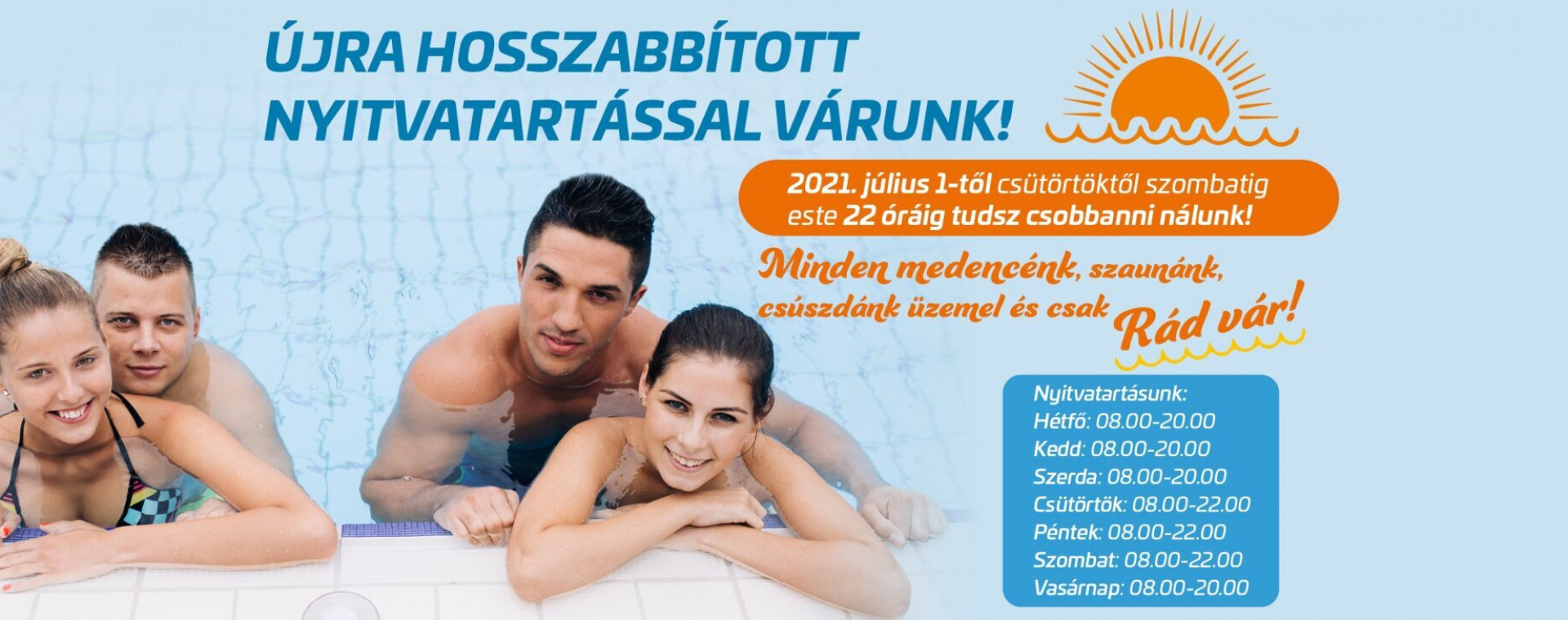2021. július 01-től csütörtöktől szombatig este 22 óráig lehet csobbanni nálunk!