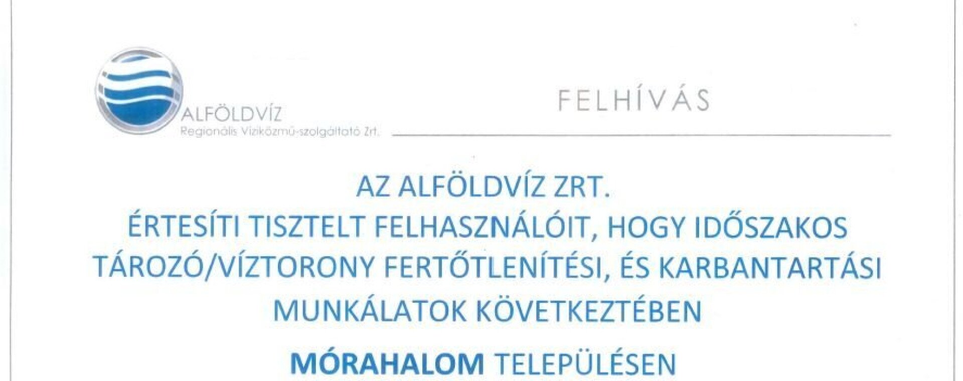 Az Alföldvíz Zrt. értesíti a felhasználóit, hogy időszakos karbantartási munkálatokat végez 2024. október 30-31-én 9:00-15:00 között!
