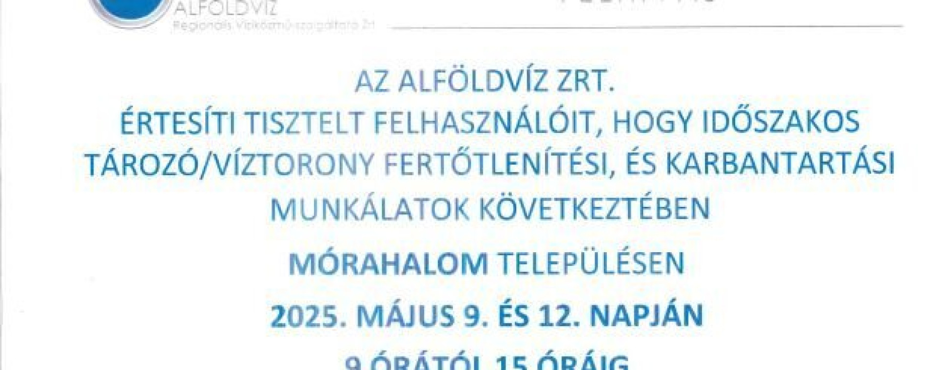 2025. május 9-én és 12-én karbantartást végez Mórahalmon az Alföldvíz Zrt.
