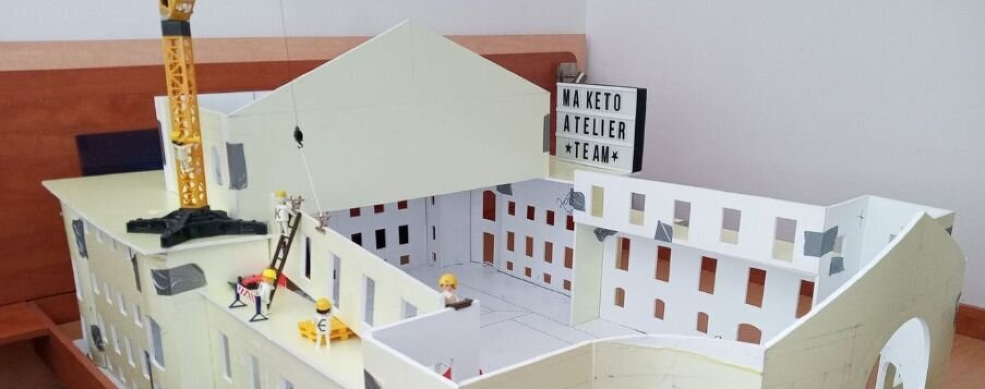 Készül a Kecskeméti Színház 1:25-ös méretű makettje a mórahalmi Ezer Év Parkjában.