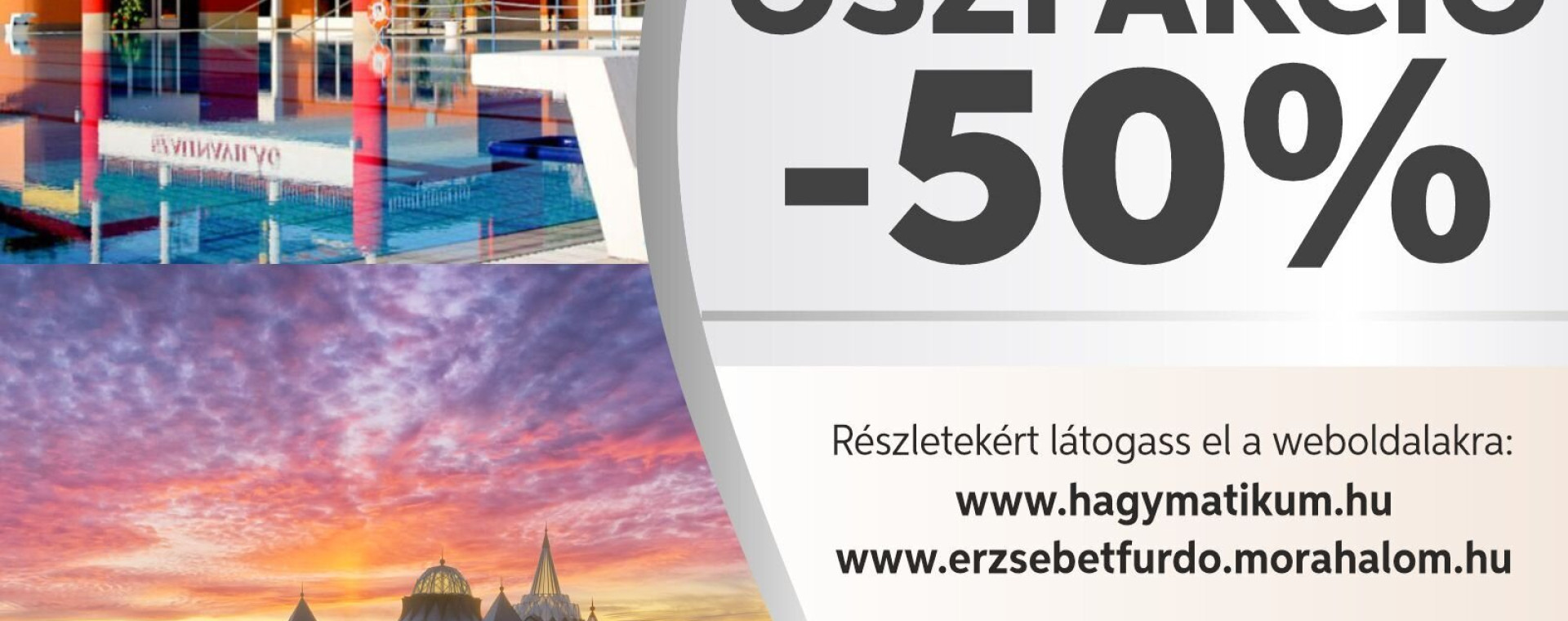 Használjátok ki különleges őszi akciónkat és csobbanjatok Mórahalmon vagy Makón 50% kedvezménnnyel!