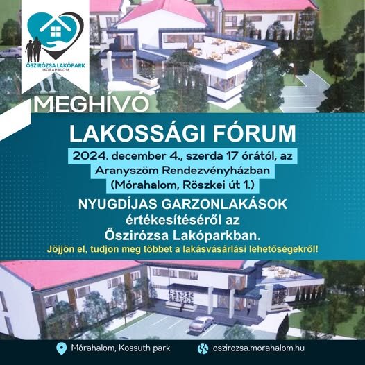2024. december 4., szerda 17 órától, az Aranyszöm Rendezvényházban (Mórahalom, Röszkei út 1.) LAKOSSÁGI FÓRUMOT rendeznek ebben a témában.