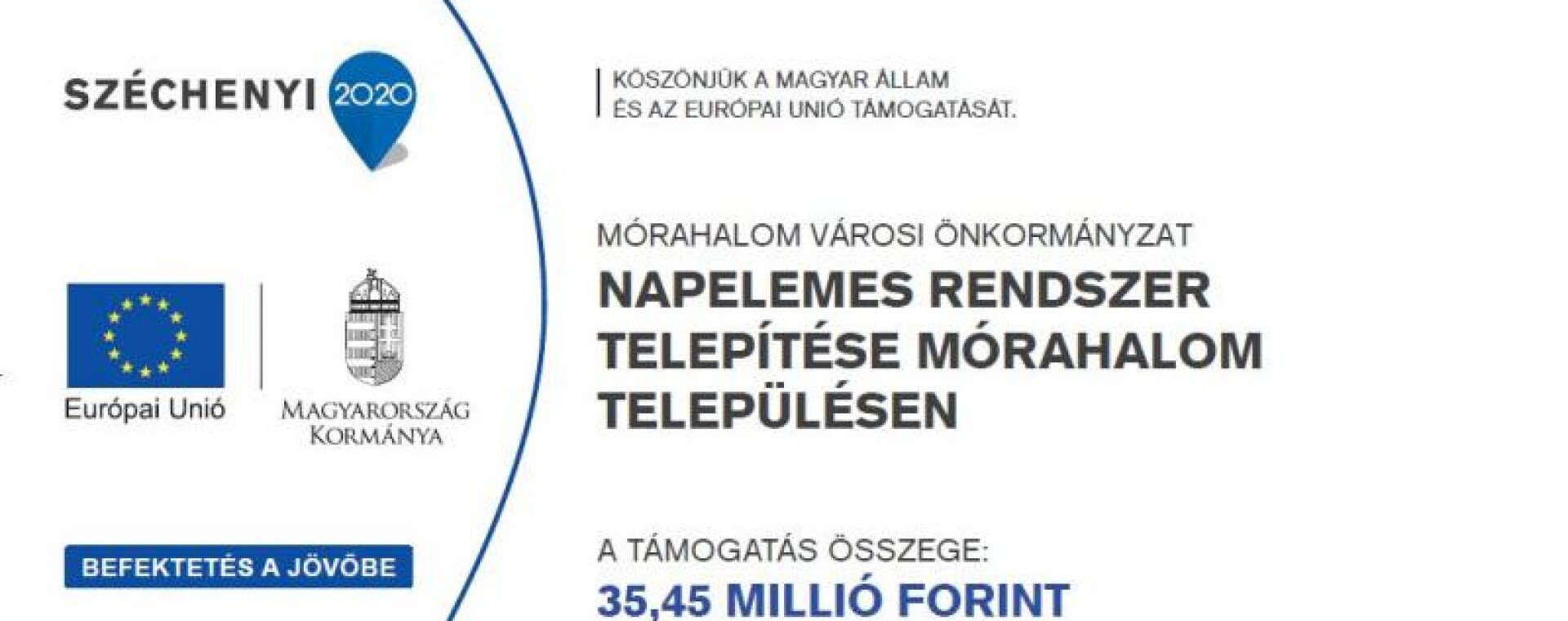 Mórahalom Városi Önkormányzat vissza nem térítendő támogatásban részesült a KEOP-2014-4.10.0/N Fotovoltaikus rendszerek kialakítása című pályázati felhívásra benyújtott pályázatával.
