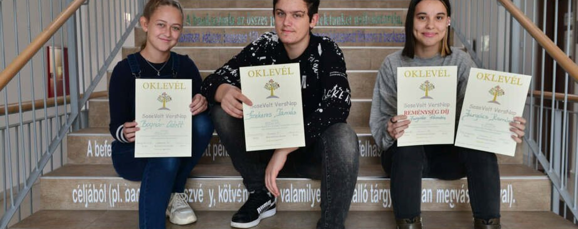A verseny négy korcsoportban zajlott. A III–IV. korcsoportban az iskola diákja, Jurgács Ramóna Reménység különdíjat vehetett át a színművészekből álló zsűri döntése alapján, Szekeres Tamás és Bognár Odett pedig ezüstérmet kapott. A diákok felkészítő tanárai Filotás Zsuzsanna és Majorosné Novák Beáta voltak. Az előválogatóra videót küldtek a diákok, egy szabadon választott verset mondtak el. A szekszárdi versenyre két verssel kellett készülni, egy kortárs magyar költő és egy szabadon választott magyar költő alkotásával. Ramóna Babits mellett Szabó T. Anna Elhagy című versét választotta, azt mondta, ez fogta meg leginkább.