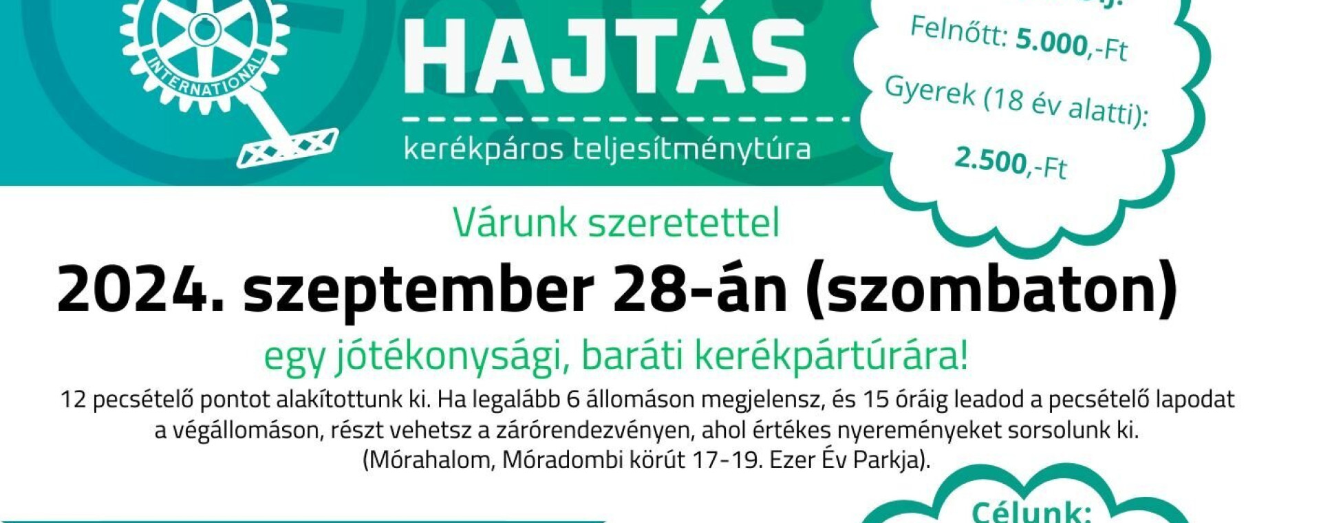Szeptember utolsó szombati napján, 28-án kerül megrendezésre a Rotary Hajtás, amely egy olyan kerékpáros teljesítménytúra, amely mindig valamilyen jó ügy érdekében kerül megrendezésre. Az esemény mórahalmi ágának évek óta központi szereplője az Ezer Év Parkja.
