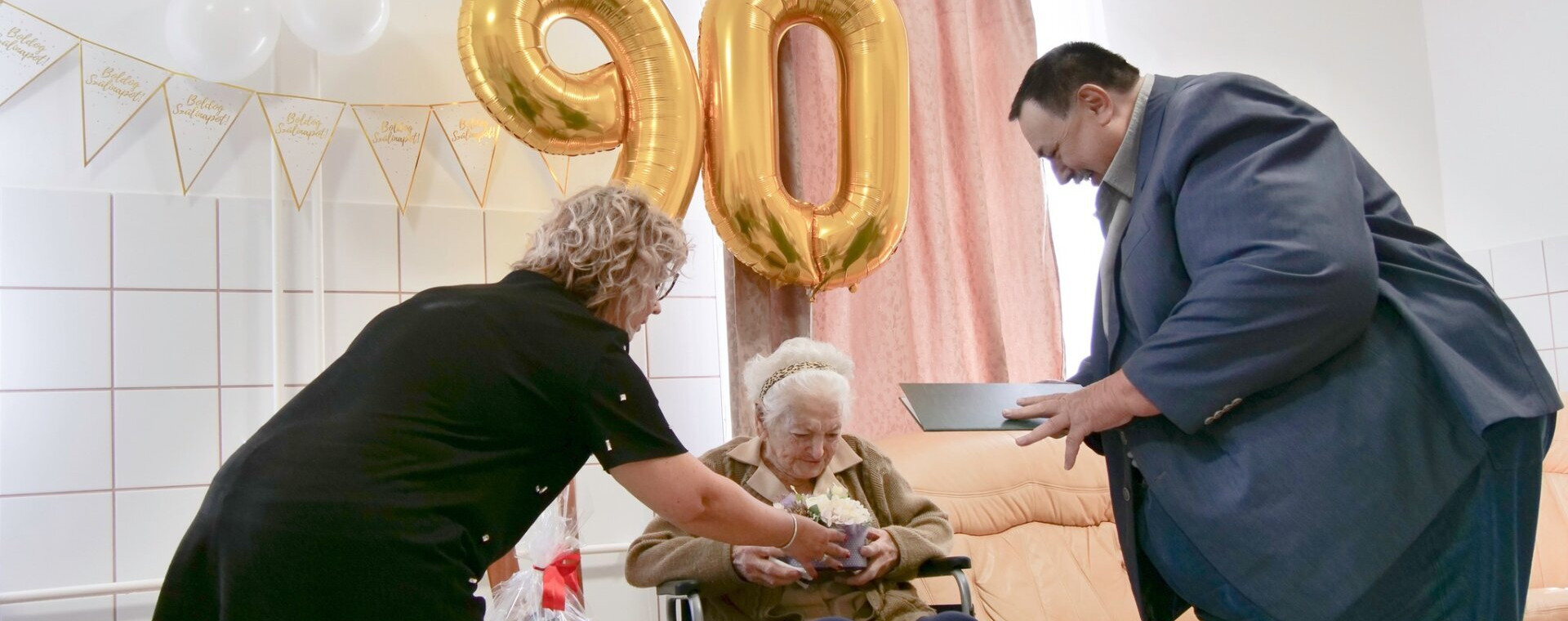 Mórahalom Város Önkormányzata nevében Csányi László alpolgármester köszöntötte a 90 éves Kószó Antalnét az Idősek Napja alkalmából. Átadta továbbá az Orbán Viktor miniszterelnök üdvözletét tartalmazó emléklapot is.