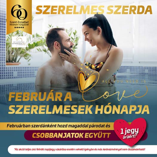 Szerdánként hozd magaddal párodat és csobbanjatok együtt 1 jegy áráért! A promóció időtartama: 2025. február 6-28.