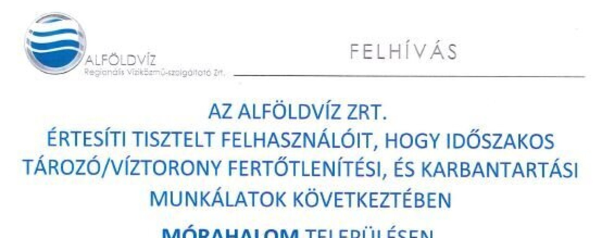 Karbantartási munkálatok miatt időszakos vízhiány léphet fel 2023. május 19-23. között.