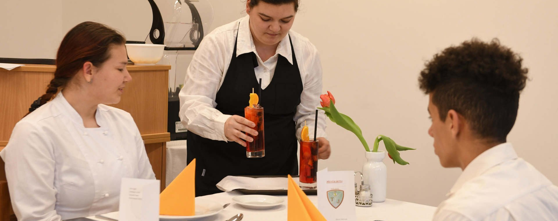 A tanulók négy vizsgarészt tettek le: turisztikai portfóliót védtek meg, főételt főztek, süteményt sütöttek, koktélt kevertek és felszolgálták ezeket – mondta Angyalné Kovács Anikó, a Szegedi SZC Tóth János Mórahalmi Szakképző Iskola és Garabonciás Kollégium igazgatója, majd vendégként helyet foglaltunk az egyik tanteremben.