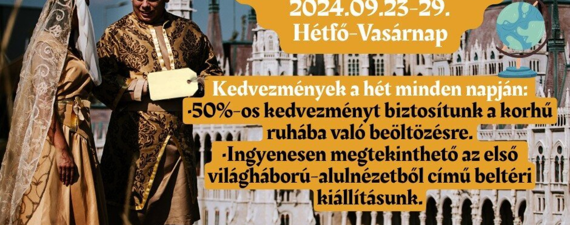 - 50%-os kedvezményt biztosítunk a korhű ruhába való beöltözésre.