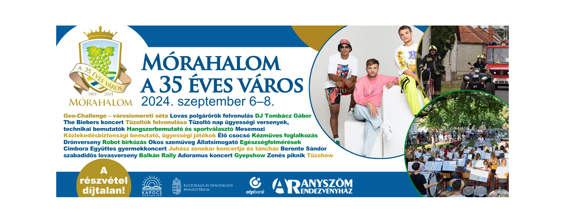 Nagy örömmel jelentjük, hogy hamarosan elstartol a "Mórahalom, a 35 éves város" elnevezésű ünnepi rendezvénysorozat!