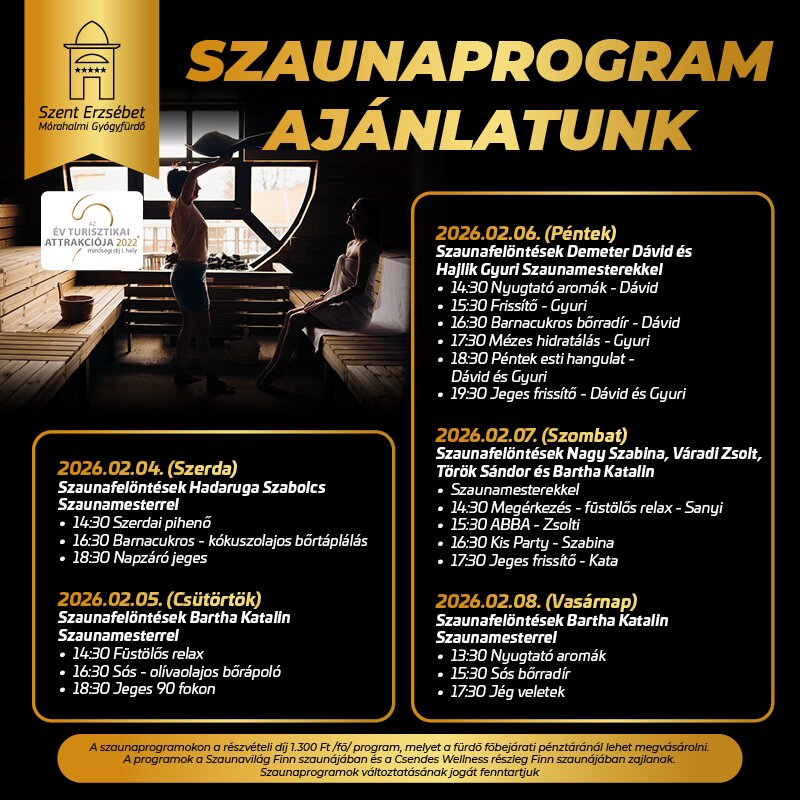 Heti szaunaprogram ajánlatunk