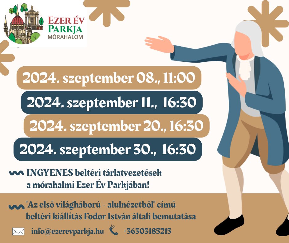A képen látható időpontokban "Az első világháború - alulnézetből" című beltéri kiállításunk meglátogatása során ingyenes tárlatvezetéseket biztosítunk a számotokra, Fodor István előadásában.