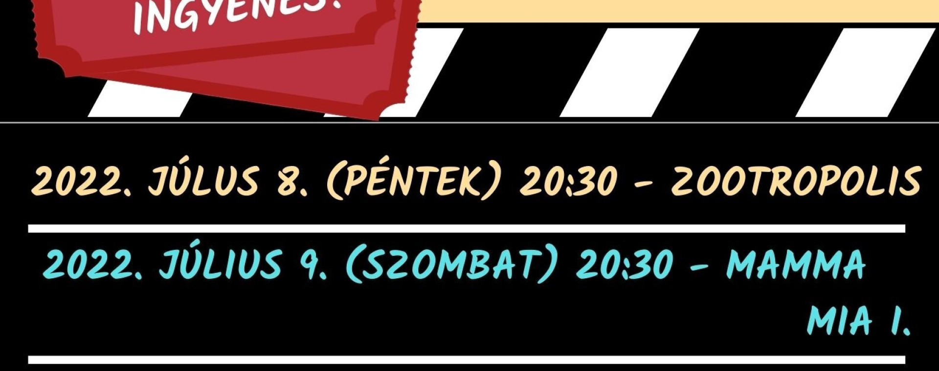 Július 08-án a gyerekek nagy kedvence, a Zootropolis című mesefilm látható, míg július 09-én a csillagos ég alatt a nyár slágermozija, a Mamma mia! első részét tesszük vászonra.