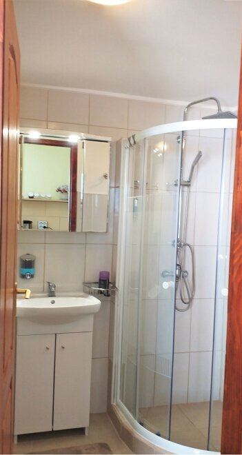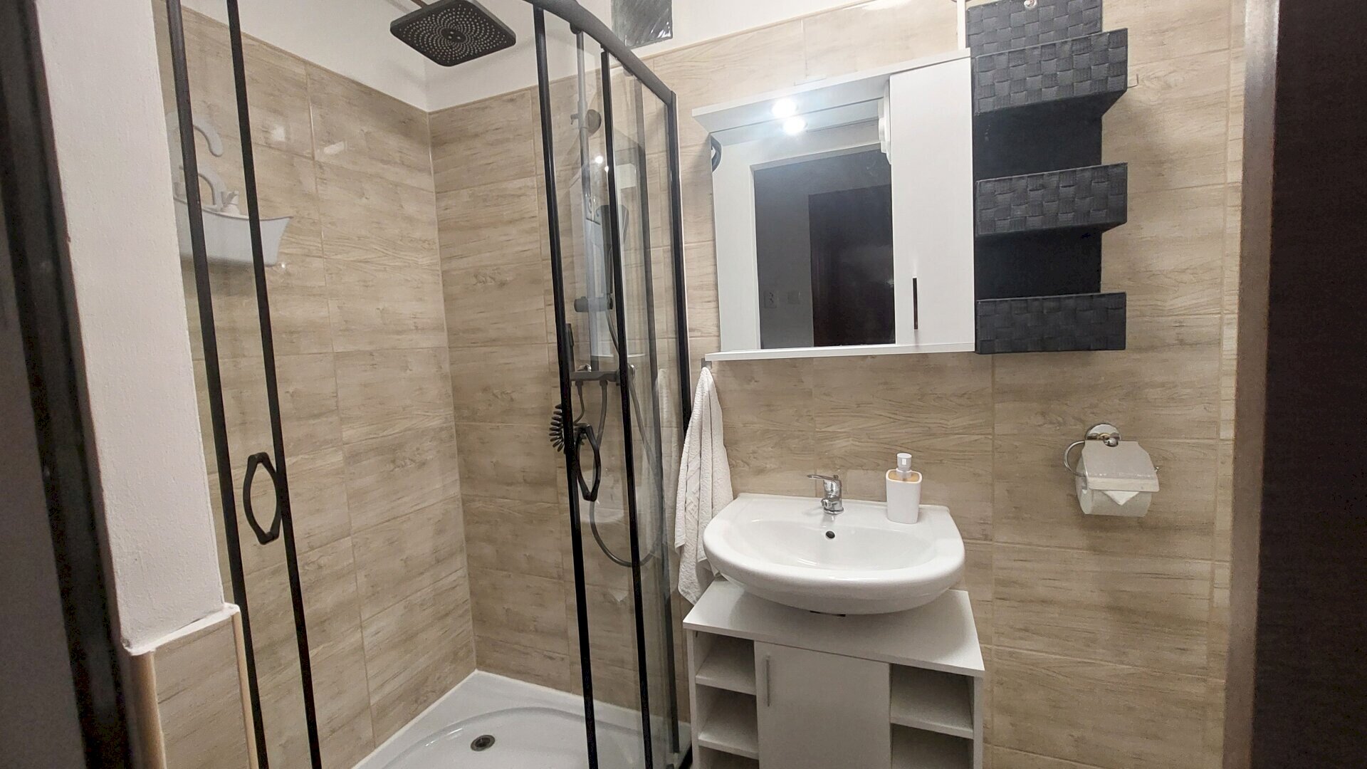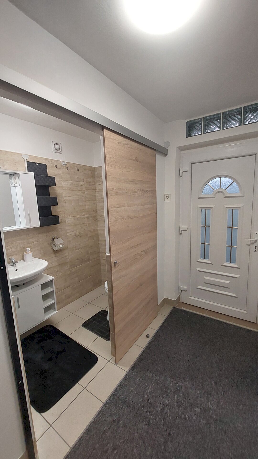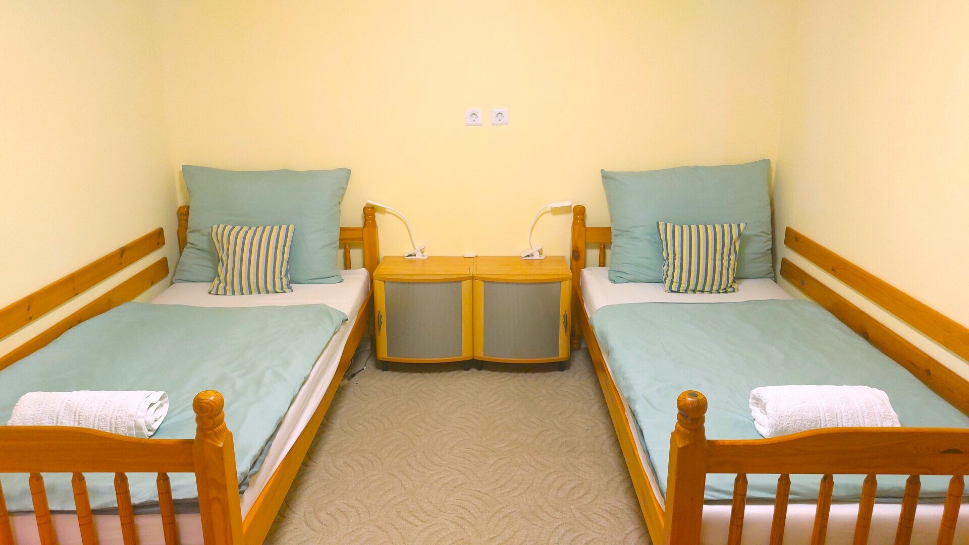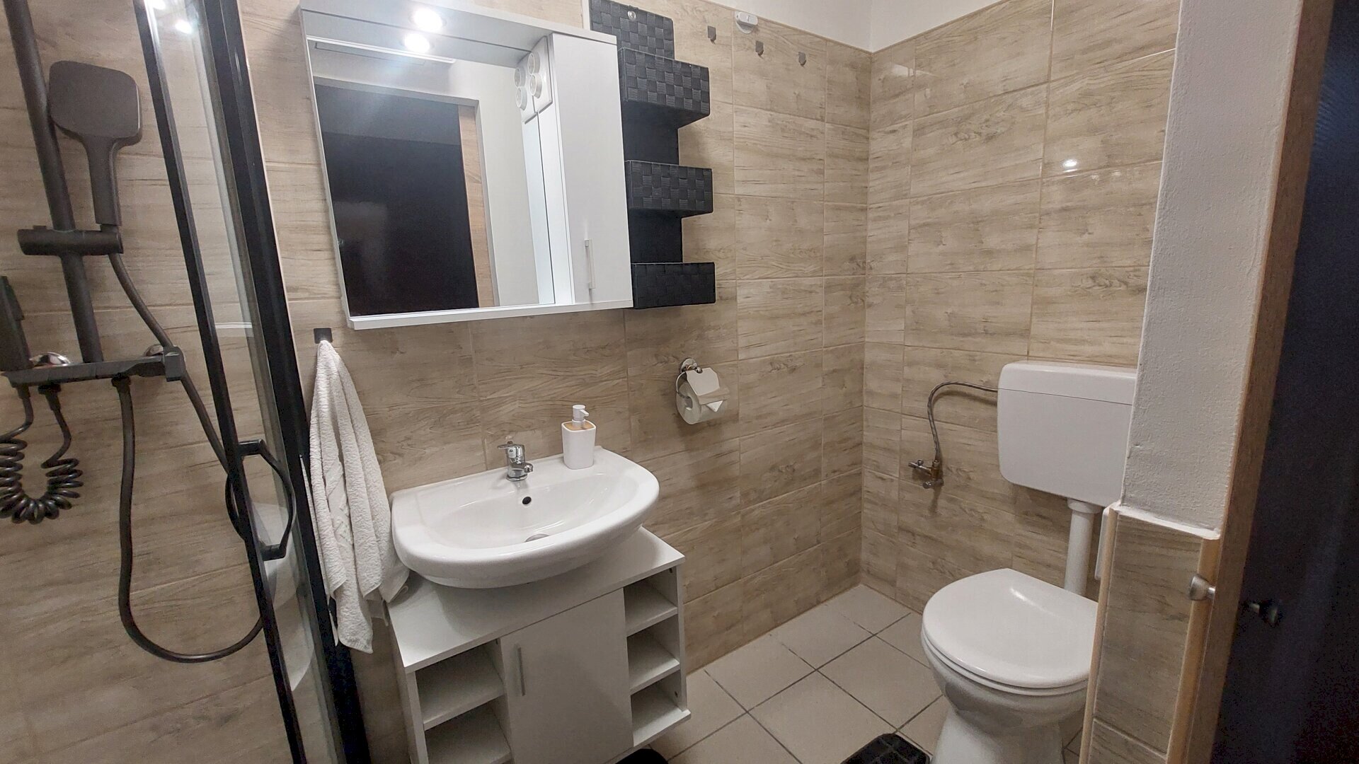 A földszintes apartmanban 6+2 fős két hálószoba, nappali, felszerelt konyha és két fürdőszoba található. A nagyobb hálószobában egy nagy franciaágy és két egyszemélyes ágy van, a második kisebb hálószobában két egyszemélyes ágy, a nappaliban egy kétszemélyes kihúzható kanapé található. A lakóegység az utcára nyílik, udvara nincs, de előtte parkolóhelyek vannak. A szobákban síkképernyős tv, Wifi van, a konyha teljesen felszerelt (kávéfőző, főzőlap, vízforraló, edények, kombinált hűtőszekrény fagyasztóval stb.). A közelben élelmiszerbolt (Coop abc), Rossmann, Pepco, pékség, fagyizó, pizzéria, étterem stb. található.