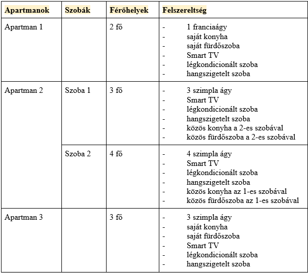 Apartmanjaink a következő felosztásban érhetők el: