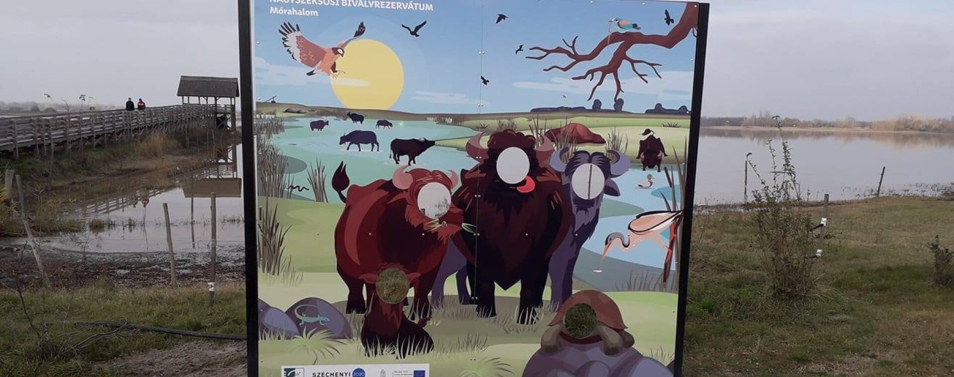 Un nou perete foto a fost creat ca o inițiativă comună a Parcului Național Kiskunság și a Móra-Tourist Kft. la Rezervația de Bivoli Nagyszéksós.