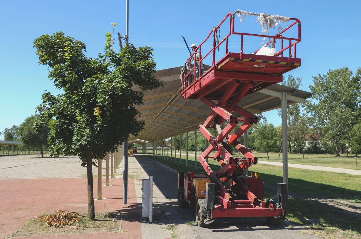 Az utolsó simításokat végzik a mórahalmi vásártéren a napokban. Fákat ültettek, a faöntöző zsákokat töltik fel vízzel. A hétvégén a megújult vásártérre várják az Országos Kirakodó- és Állatvásár látogatóit Mórahalomra.